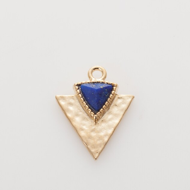 Charm Egypt Oro - Triangolo martellato con pietra in lapislazzuli in ottone di alta qualità - Collezione Charm