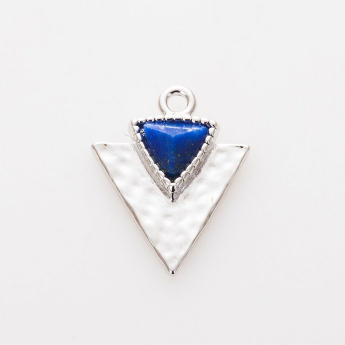 Charm Egypt Argento- Triangolo martellato con pietra in lapislazzuli in ottone di alta qualità - Collezione Charm