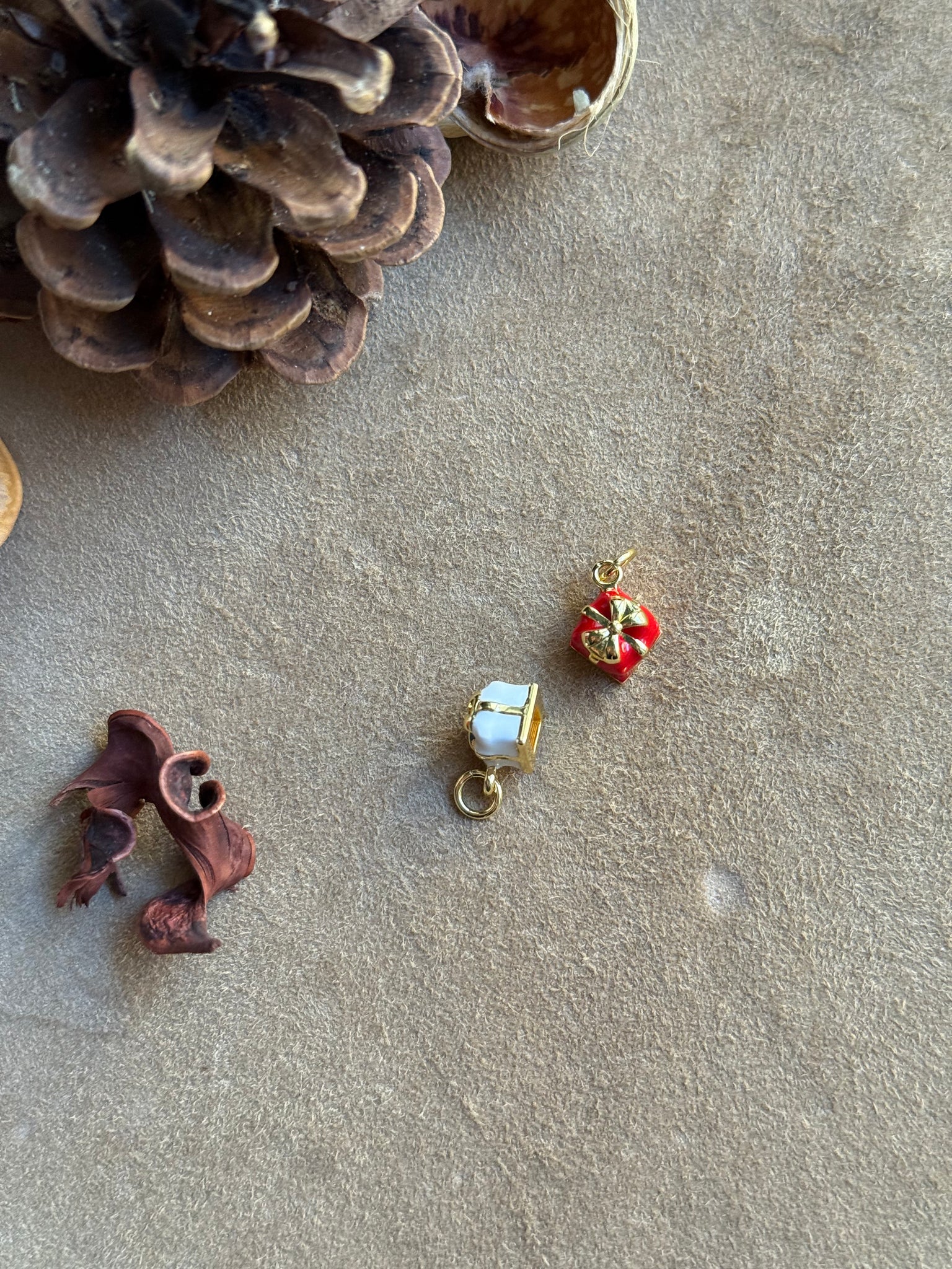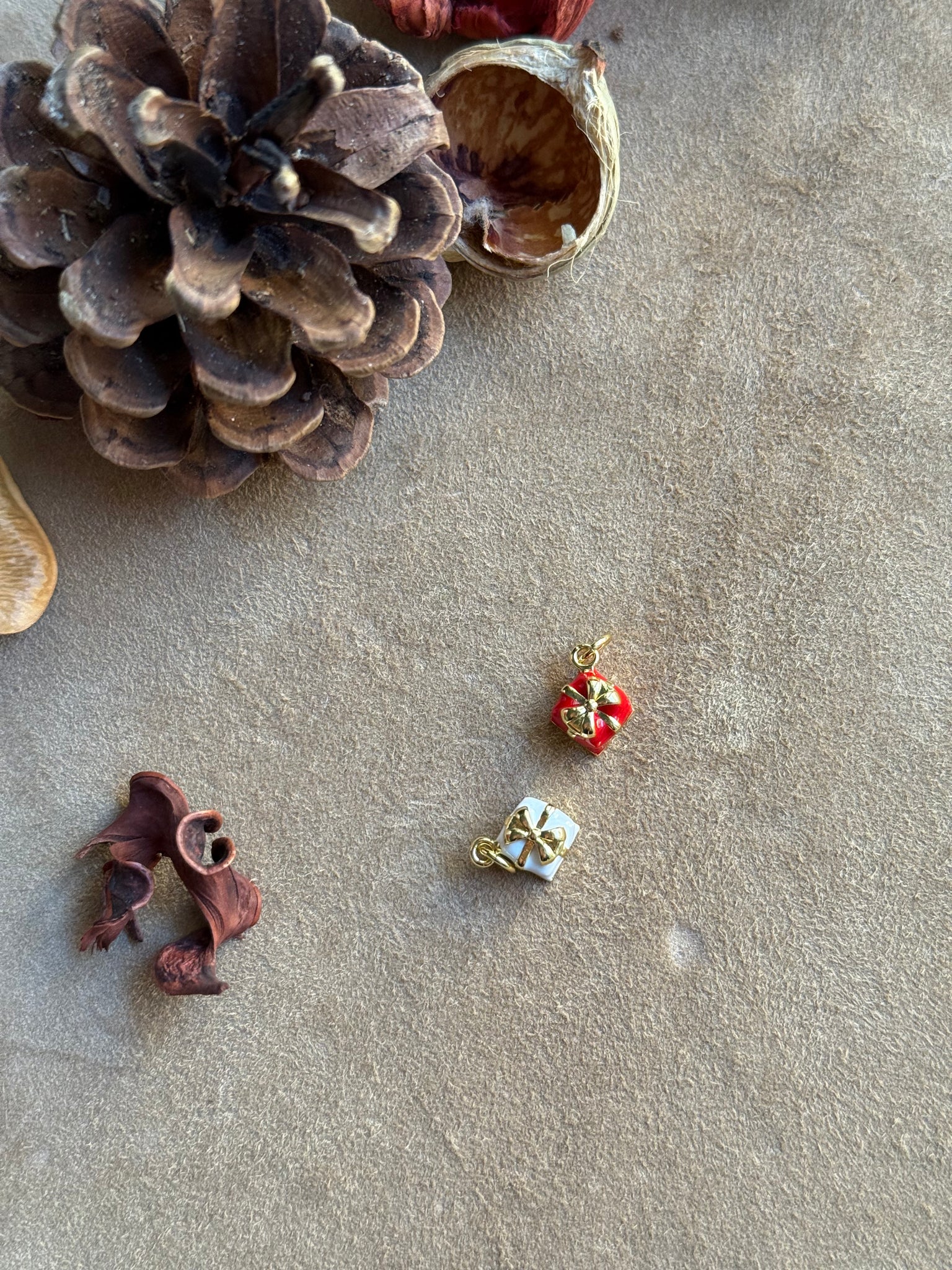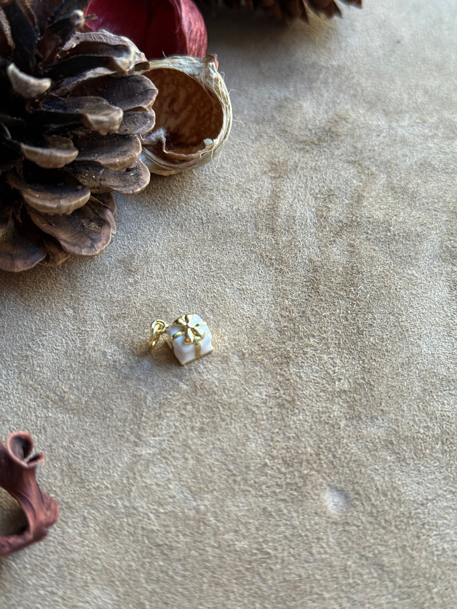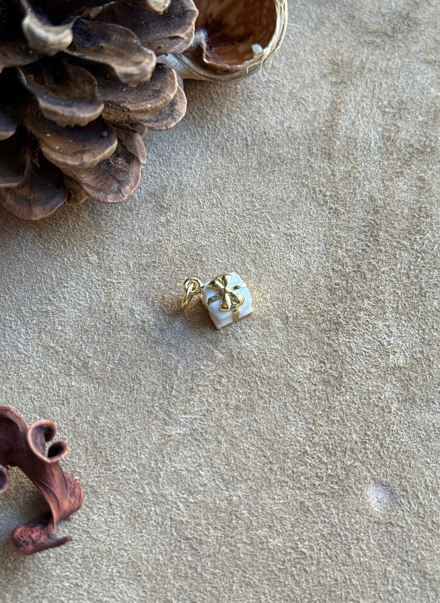 Un pendente a forma di  pacchetto regalo bianco con tanto di fiocchetto: divertiti ad impreziosire le tue collane e regalare un tocco in più ai tuoi outfit.