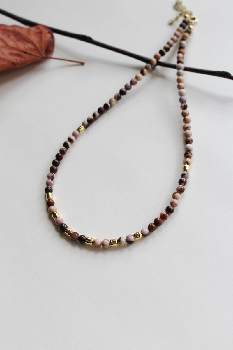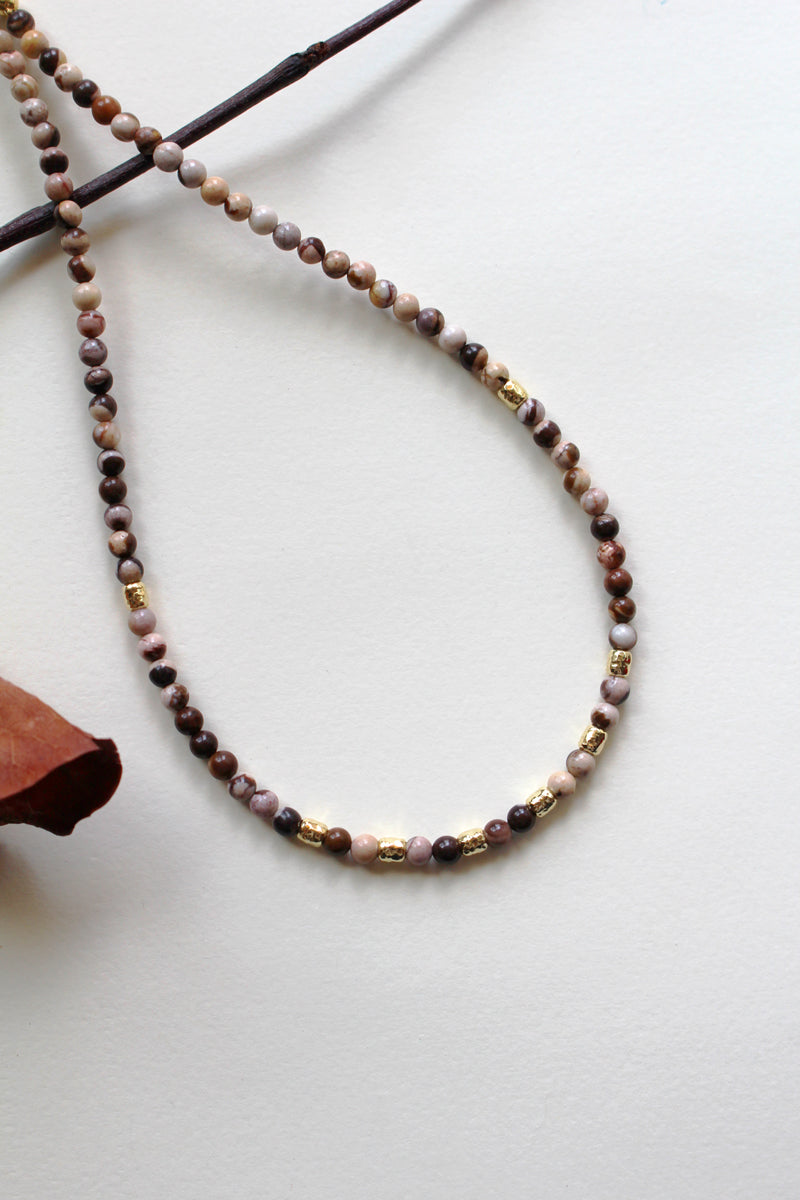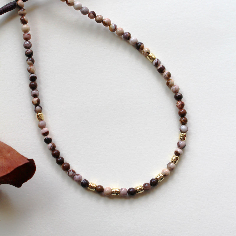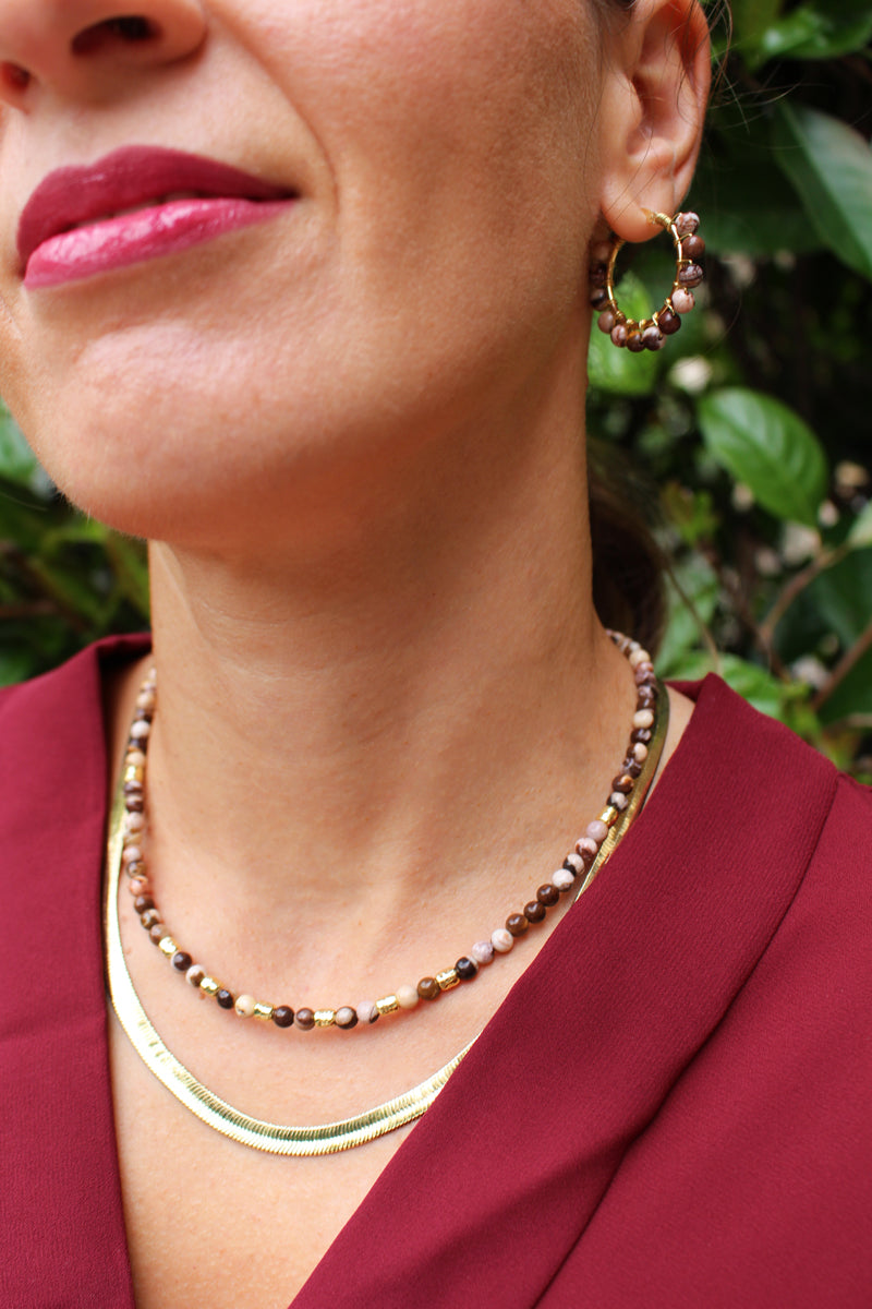 Collana Bubble Triple Chocolate - Girocollo in diaspro zebrato e argento placcato oro - Collezione Bubble