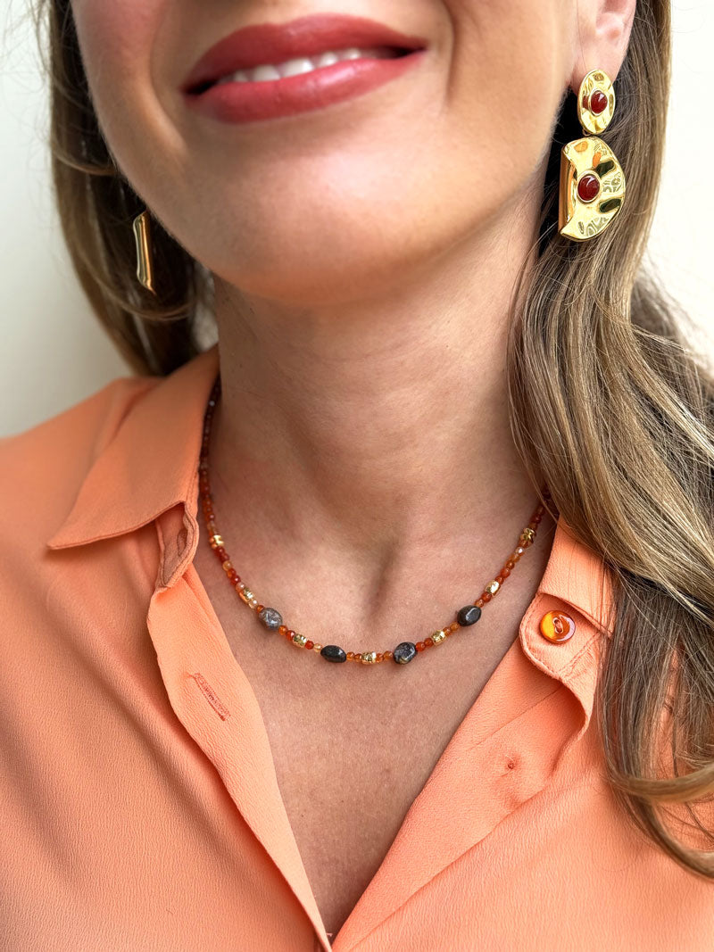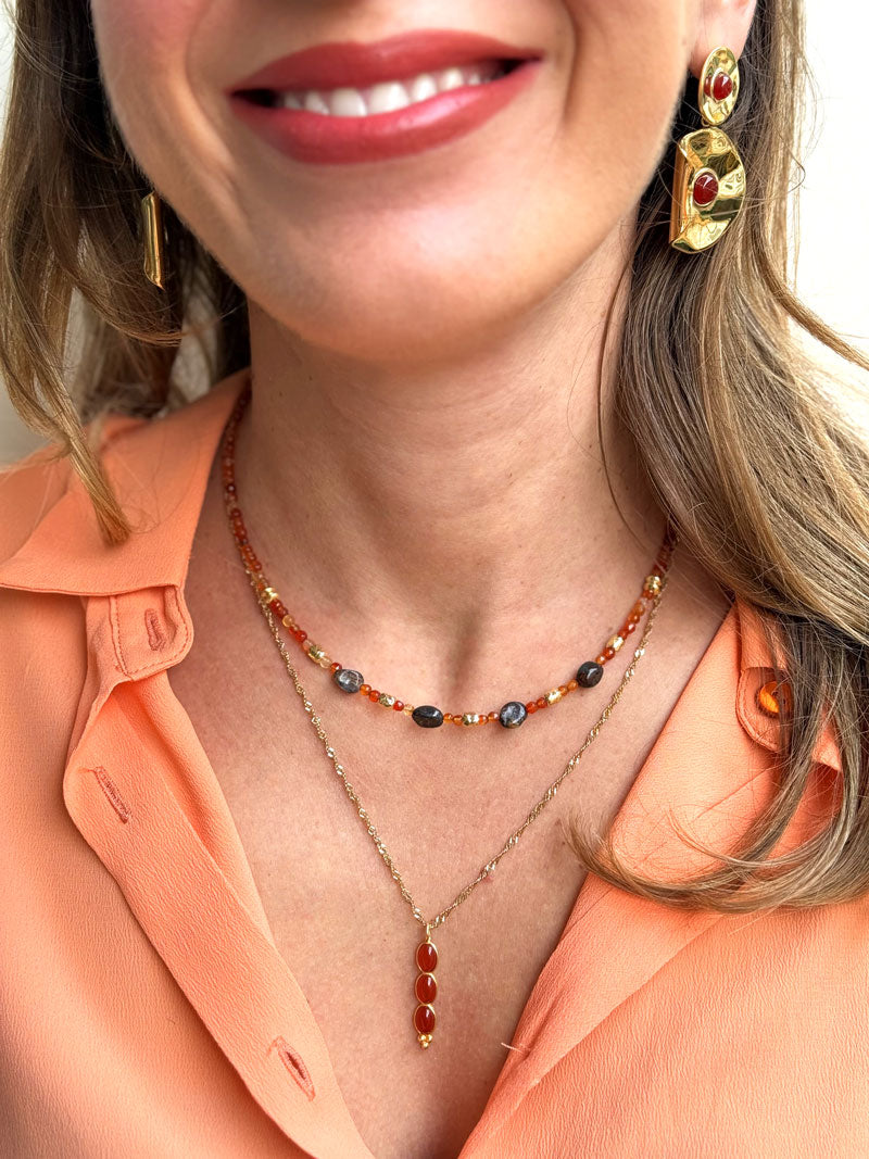 Tramonto sul Roero – Collana realizzata a mano in corniola rossa e bronzite e pepite d'oro