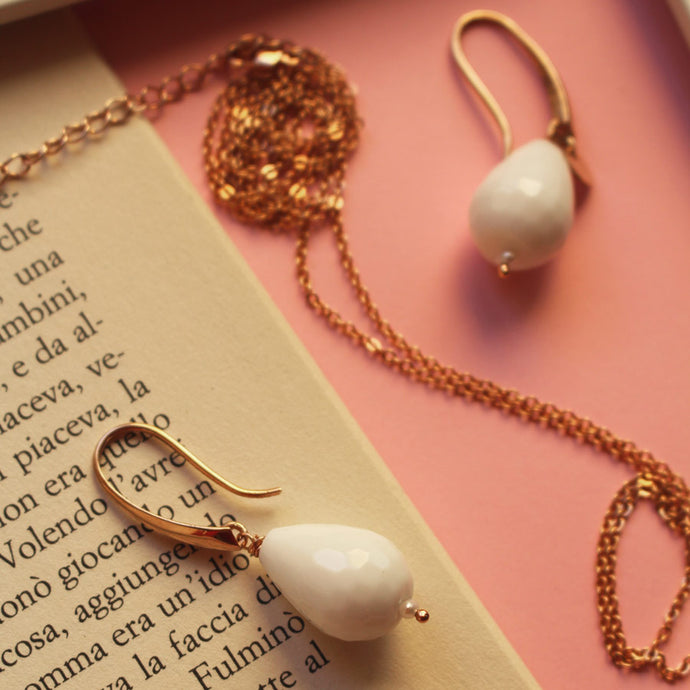 Orecchini Amalfi - In argento placcato oro rosa e agata bianca - Collezione Terra Mia