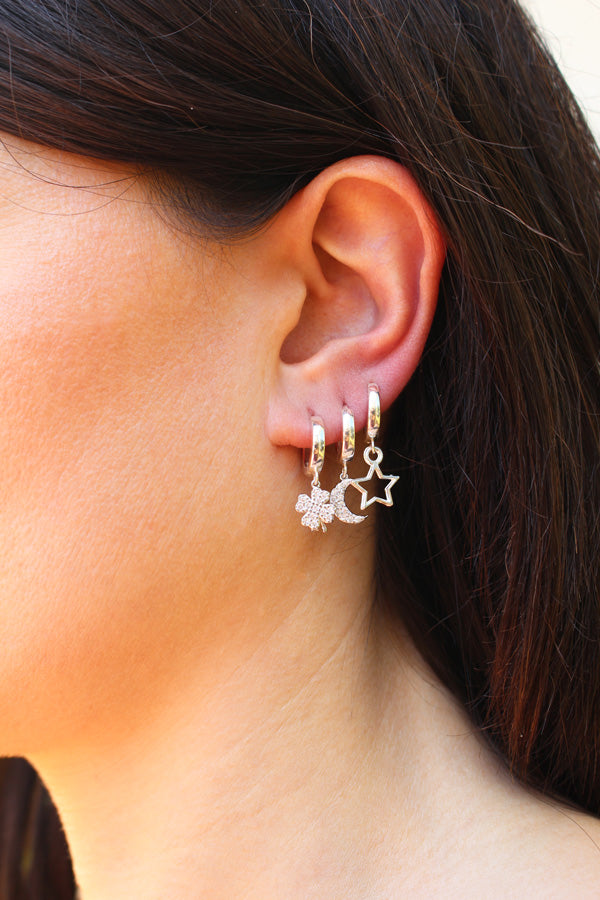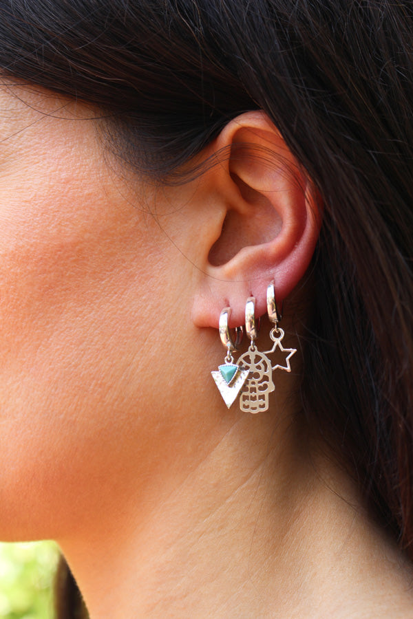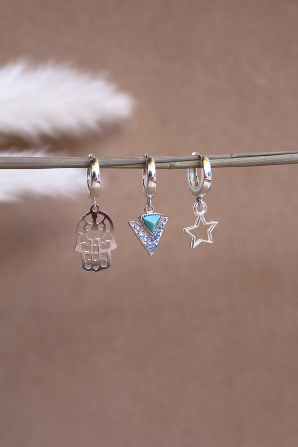 STELLA è un Mono Orecchino in argento 925 placcato rodio, che monta un simpatico pendente aperto a forma di stella!