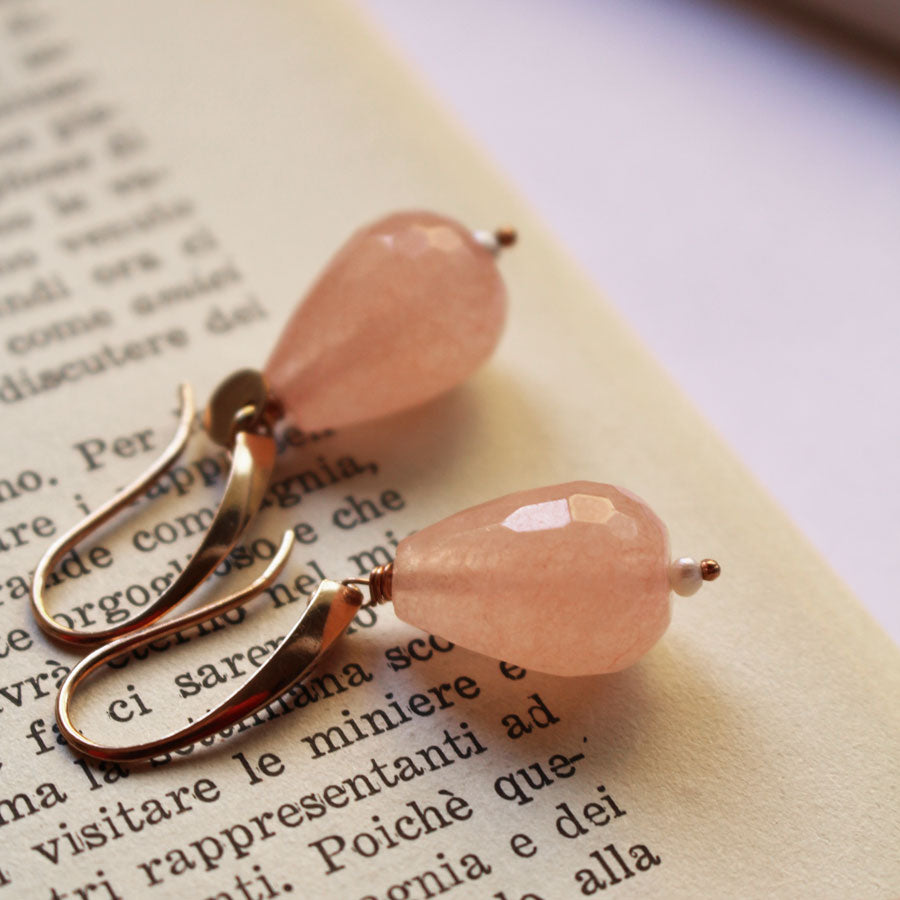 Orecchini Positano - In argento placcato oro rosa e giada cipria - Collezione Terra Mia